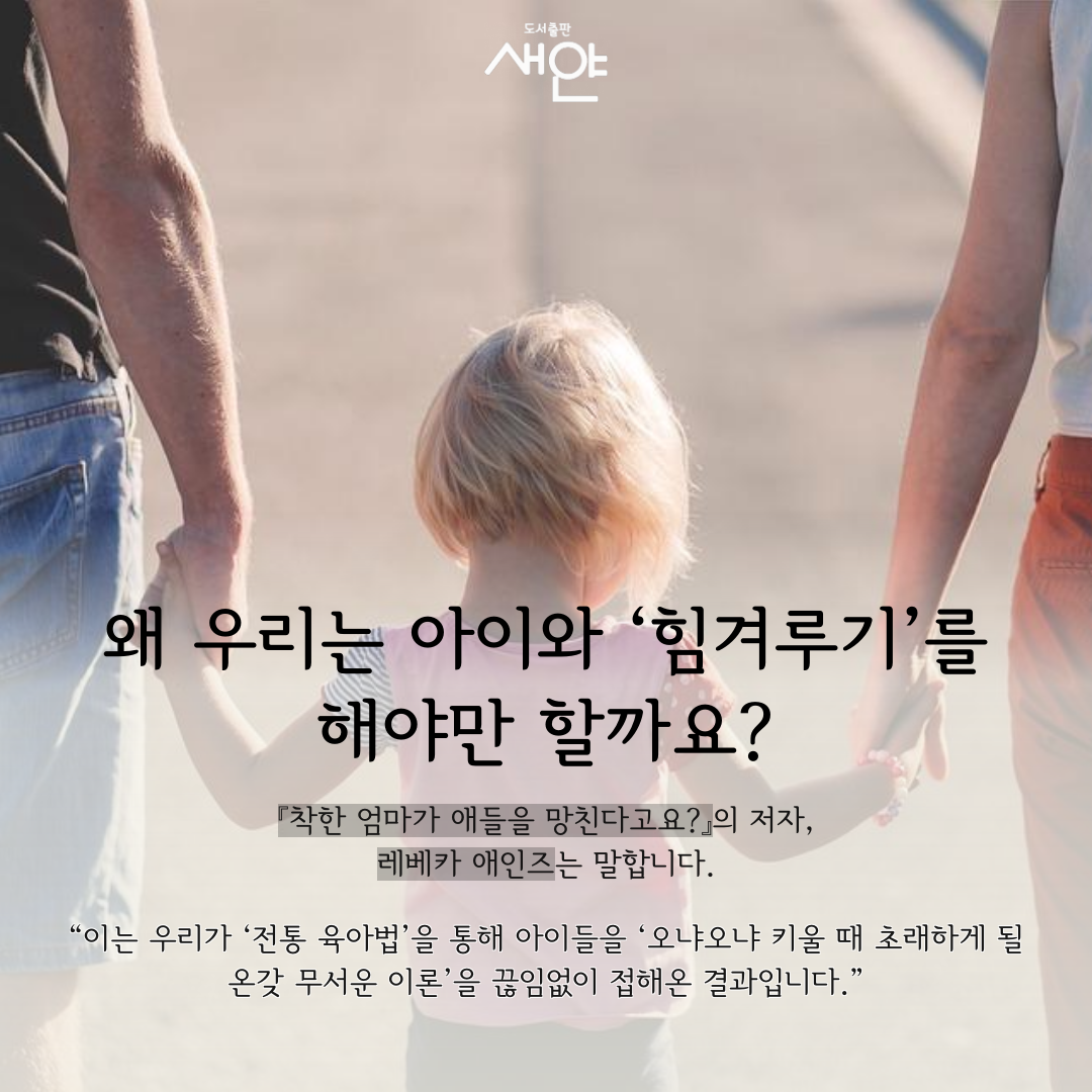 베스트셀러 작가로서 ‘긍정 육아법’을 히트시킨 레베카 애인즈의 『착한 엄마가 애들을 망친다고요?』. 이 책은 자녀와 지지고 볶는 촌극에 좌절감, 스트레스, 분노가 만연한 기존 육아에서 벗어나 육아에 진정한 기쁨을 느끼고 싶어 부모들을 위해, 소리 지르고, 잔소리하고, 누가 이기나 힘겨루는 육아 대신 유대감을 드높이는 ‘긍정 육아법’의 새로운 길을 제시한다.